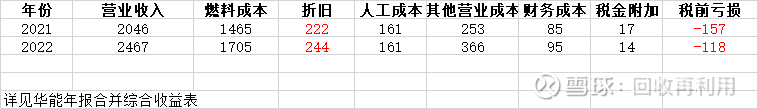 为什么说纸面上?在华能支付了燃料成本、人工成本、其他营业(运维等)成本、财务成本、营业税金后,从现金流的角度讲其差值还是正的。这里我把折旧标红了,在加入折旧摊销后,利润转负。什么意思呢,也就说在21、22年最极端的情况下,华能尽管纸面利润是亏损的,但仍然没有到亏现金流的地步。