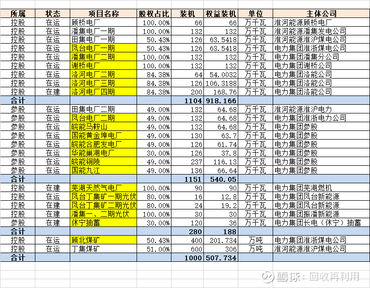 项目一共两家公司一期叫淮沪煤电,淮河大股东上电小股东,包含田集一期电厂和丁集煤矿,二期叫淮浙电力,上电大股东淮河小股东,包含田集二期电厂。