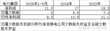 由于电力集团涉及少数股权益的只有淮浙煤电和洛能且洛能刚扭亏,所以少数股东权益基本就是淮浙煤电公司利润中归属浙能的部分。相应的倒推电力公司除了淮浙煤电公司外,其他控股及参股公司2025年1-9月净利润约为5.3亿元,叠加已经在上市公司顾桥、潘集一期,合计约8-9亿元,年利润约为10-11亿元。