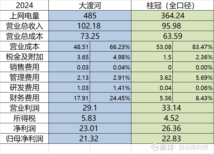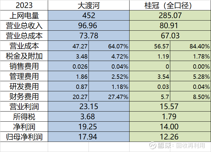前言:例行叠甲,本文通过对比国能大渡河与桂冠的数据,揭示国能大渡河相对价值。不涉及对桂冠本身的评价。此外,为了方便获取数据,桂冠采用全口径统计,不再拆分各业务板块数据,不影响结论。
