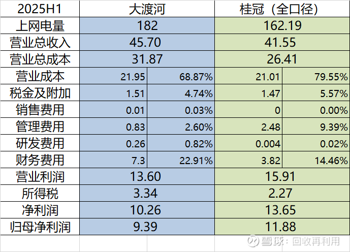 2025年H1,尽管大渡河比桂冠多发了20亿度电,且受益于四川水电价格政策调整上半年电价略有提升,但由于上网电价依然偏低,叠加高额的财务成本,且所得税多支付了1个亿,依然是debuff缠身,导致大渡河归母净利润低于桂冠2.49亿。