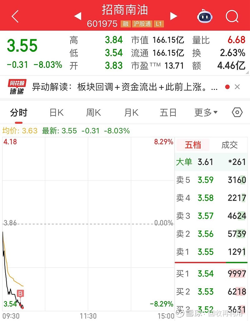 $招商南油(SH601975)$