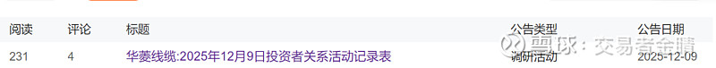 $华菱线缆(SZ001208)$调研活动是12月9日的,