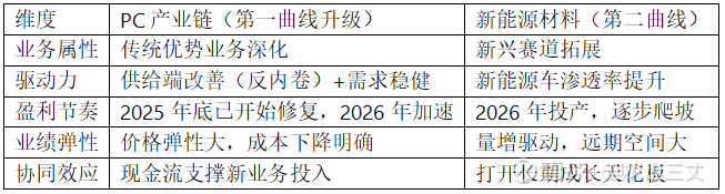 核心结论:维远股份拥有双重第二增长曲线——PC产业链盈利反转(短期弹性)与新能源材料放量(长期成长)。