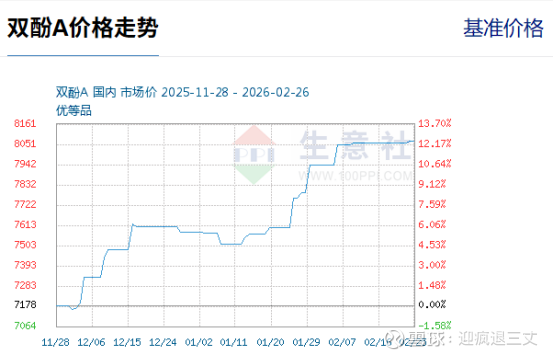 (2)价格已启动上涨:2026年2月10日国内PC均价13700元/吨,较年初涨750元/吨,较2025年9月低点涨1500元/吨
