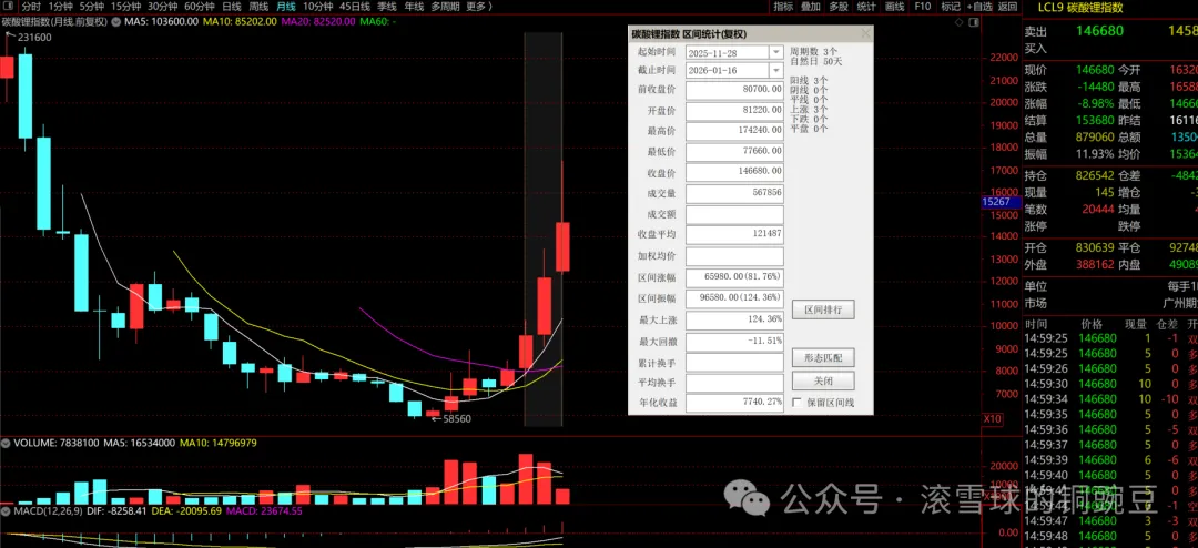 碳酸锂周五大跌本质是多头利益回吐,看看月线走势就明白了。12月涨幅21%;11月16%;即便周五跌停,本月涨幅也还高达21%,这才刚过了半个月。