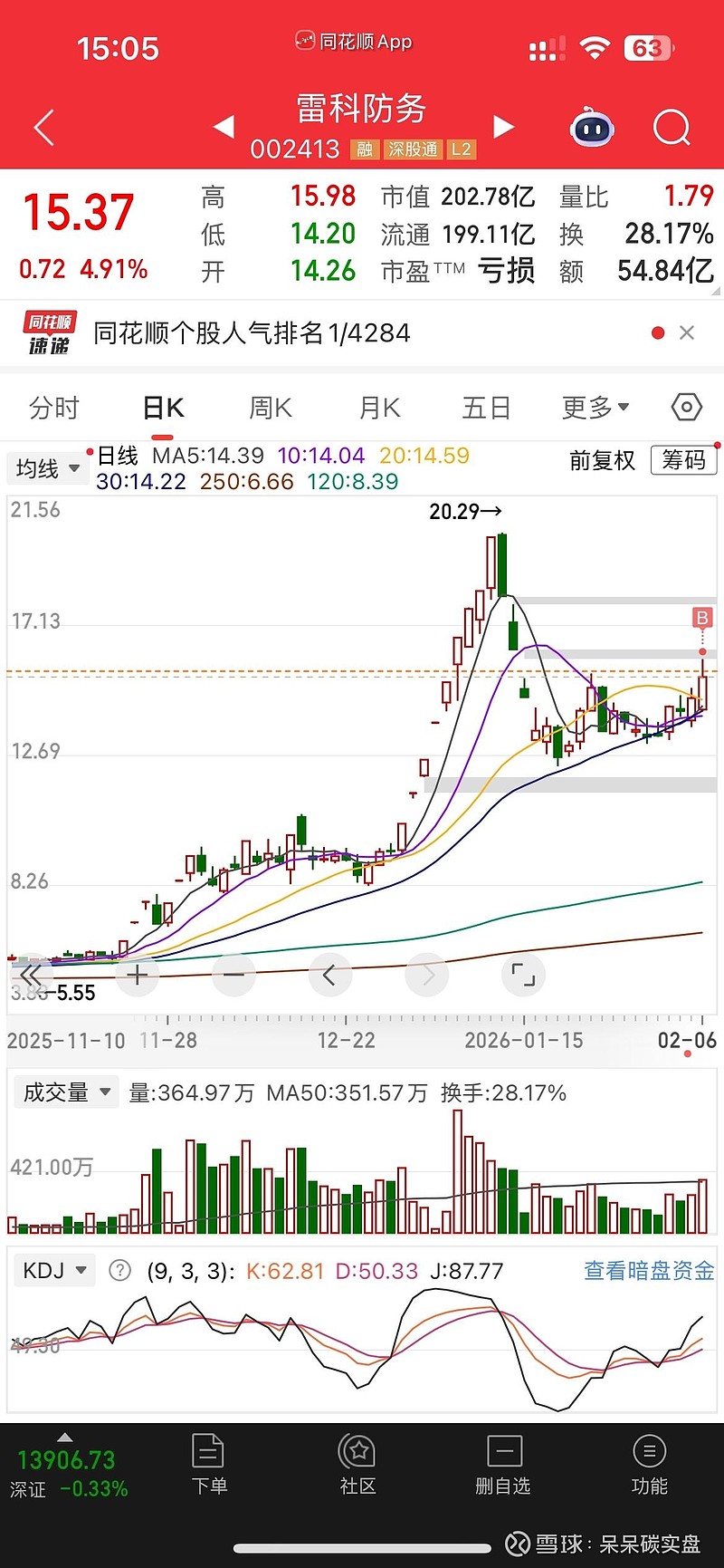 日K线显示:股价近期呈现明确的上升趋势,目前价位运行于多条重要均线(如MA5: 14.39, MA10: 14.04)之上,短期技术结构强势。