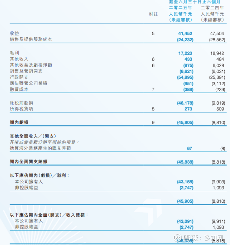 营收4150万元,同比减少600万元。其中,课外课程(供针对儿童及青少年的课外个人素质课程)营收1330万元,同比减少约19.9%;海外教育(作为代理提供海外教育咨询服务)营收1930万元,贡献总营收的46.5%,同比减少约14.2%;培训及咨询(向教育机构、学校及其他实体提供师资培训及其他咨询服务)营收300万元,同比减少约62%;其他(主要包括品牌名称许可及相关咨询服务、销售书籍及教材)营收20万元,同比减少约30万元;品牌营运及管理(作为代理,透过电子商务平台促成货品销售交易)营收约570万元。
