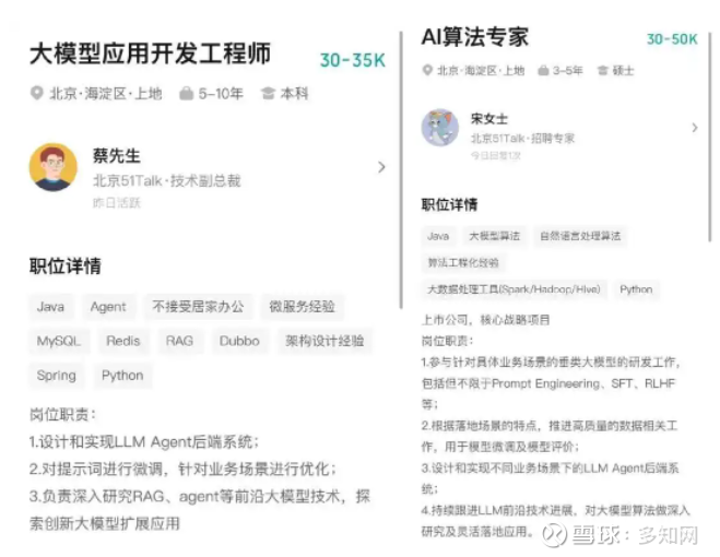 此前在一些招聘平台可以看到51Talk对大模型应用开发、AI算法专家等岗位的需求。