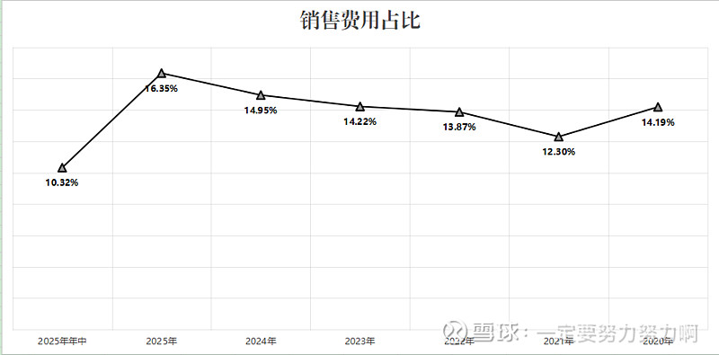 2021年-2025年销售费用占比逐年提高,2025年更是达到了16.35%。