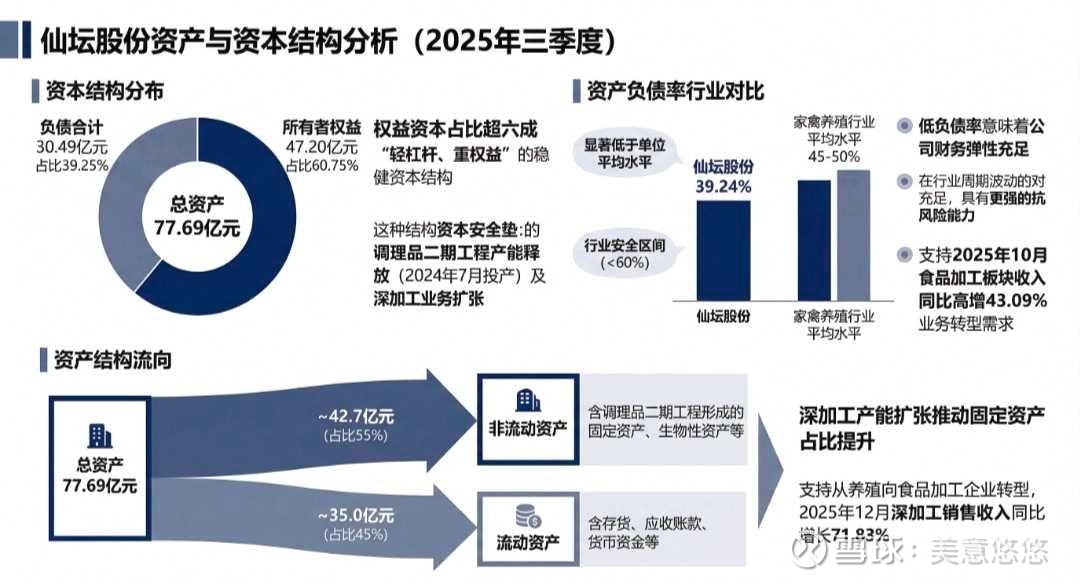 先给大家上硬数据:2025年三季报,仙坛股份交出了一份**“营收高增、现金流充沛、杠杆极低”**的成绩单,完全是养殖板块里的优等生姿态。