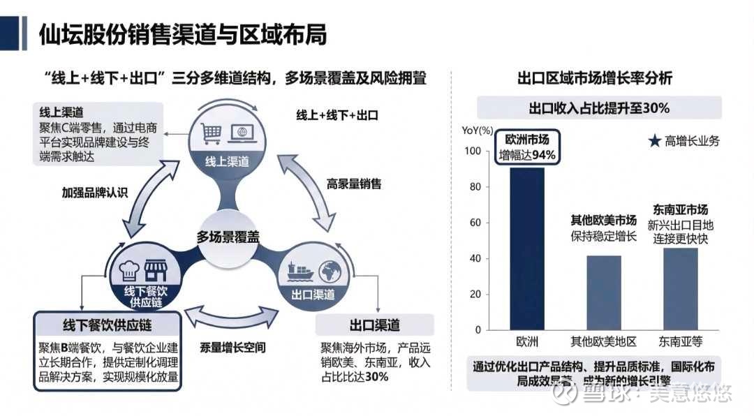 仙坛股份最聪明的地方,是没有把鸡蛋放在一个篮子里,而是构建了**“线上+线下+出口”的立体渠道网络**,既覆盖了不同场景,又完美对冲了单一市场的风险。