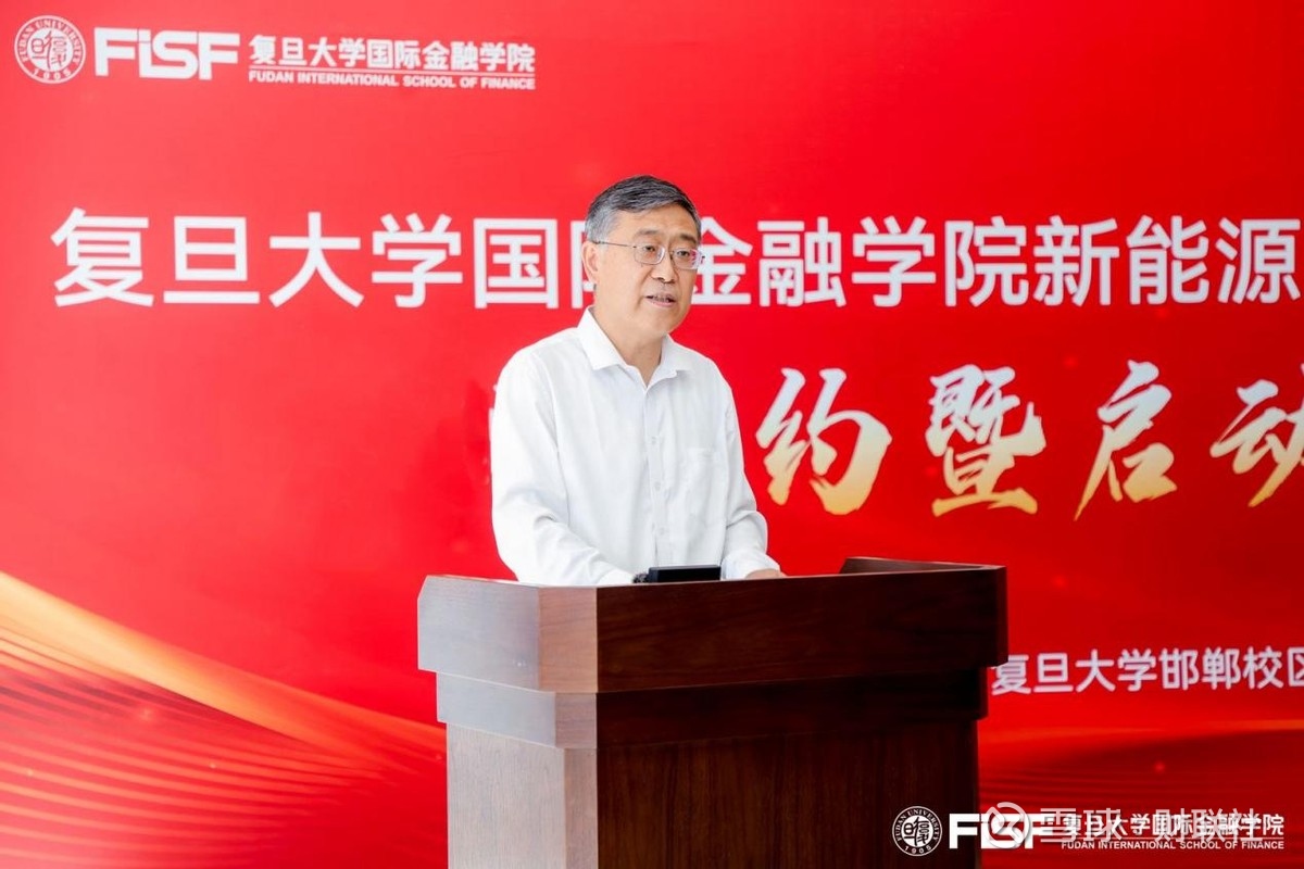 复旦大学国际金融学院执行院长钱军在致辞中首先向中环新能源控股集团的捐赠表示感谢。他指出,复旦大学作为全球知名高校,拥有卓越的科研实力和雄厚的师资力量,特别是在新能源领域,围绕国家科技发展规划,展开了一系列前沿研究,为实现“双碳”目标贡献力量。复旦大学国际金融学院,更是按照国际一流标准创办,培养了大量金融精英,为金融强国建设提供了人才支撑。