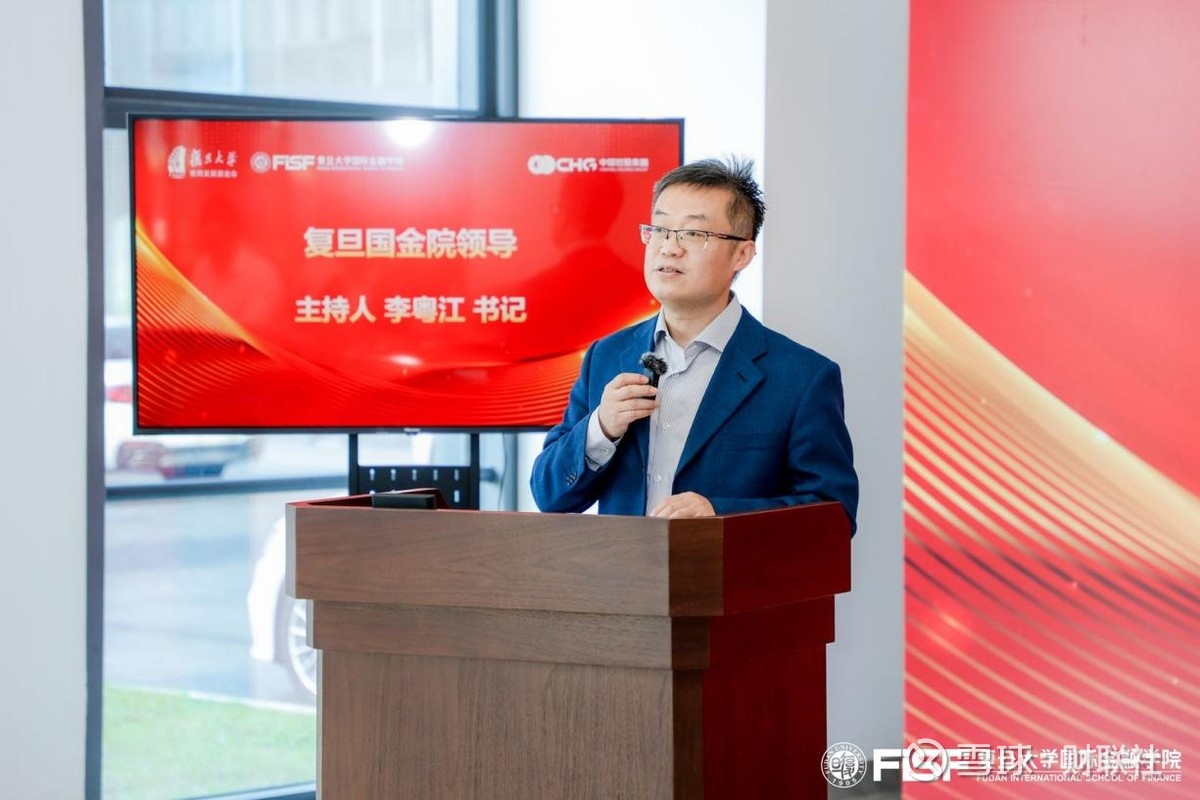 图|复旦大学国际金融学院党总支书记、经济学院党委书记李粤江主持仪式