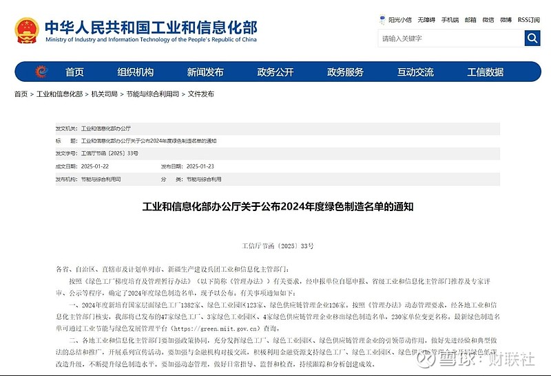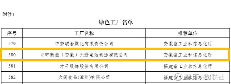 新春渐近,佳音再传。近日,国家工业和信息化部办公厅公布2024年度绿色制造名单,中环新能源控股集团(01735.HK)旗下中环新能(安徽)先进电池制造有限公司入选2024年度国家层面绿色工厂名单。