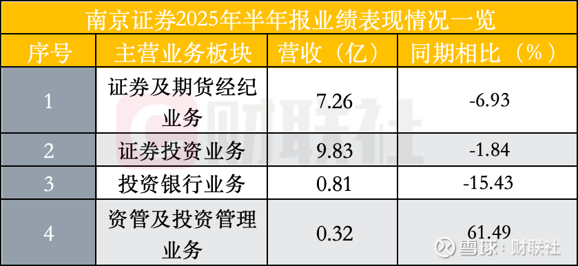 在券商资管向主动管理能力增强背景下,南京证券资产管理业务上半年表现亮眼,以 61.49% 的同比增幅成为公司业绩的核心支撑,对冲部分业绩下滑压力。
