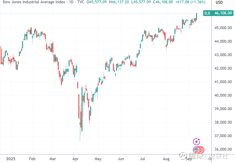 财联社9月12日讯(编辑 史正丞)昨夜今晨,伴随着大致符合预期的美国8月CPI和展现就业降温的初请数据,美联储下周降息的所有障碍已经全部扫清。美股三大指数齐步再创历史新高,道指历史首次站上46000点。