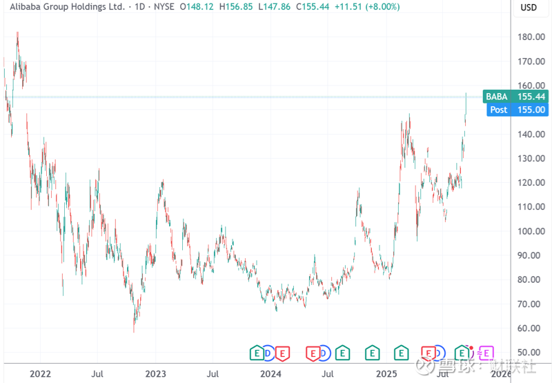 AI的利好也照耀到中国股民身上。阿里巴巴美股隔夜暴涨8%,不仅强势突破3月底的前高,也刷新2021年底以来的新高。