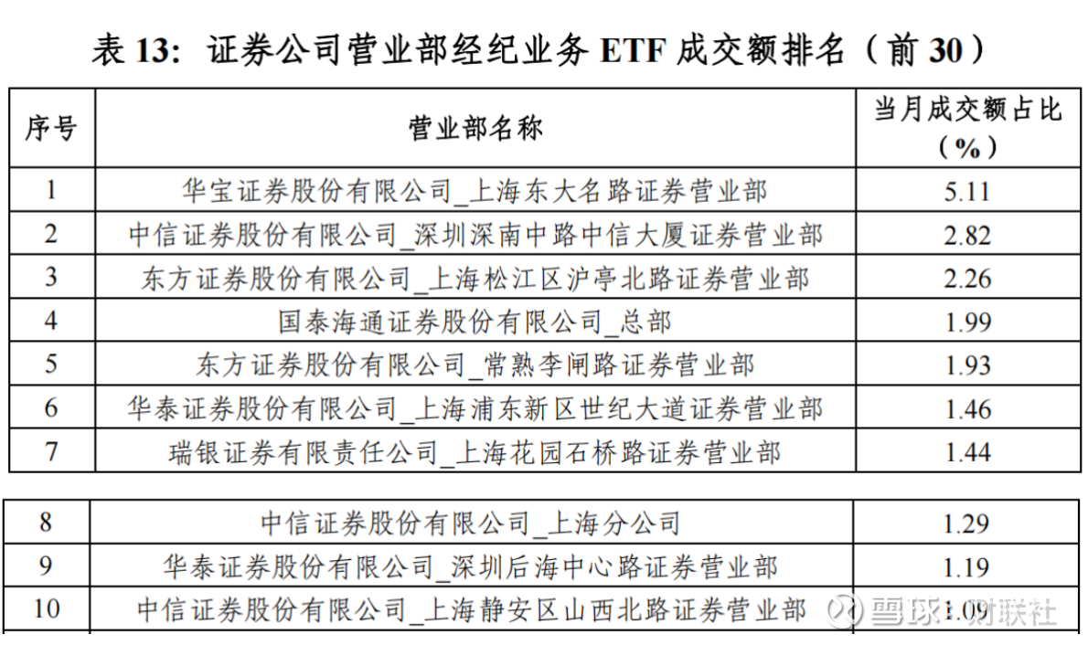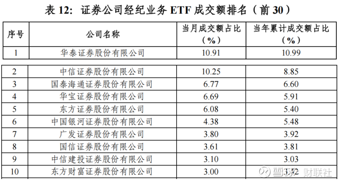 沪市排名中,华泰证券以10.91%的当月成交额占比蝉联榜首,不仅较7月的10.80%提升0.11%,当年累计成交额占比也达到10.99%,较7月的11.01%基本持平,彰显出华泰在ETF交易领域的深厚客户基础与业务粘性。
