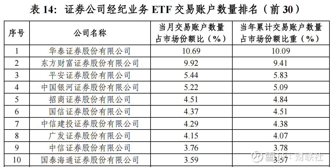 ETF交易账户数量是衡量券商客户活跃度与市场渗透力的核心指标。8月沪市数据显示,华泰证券与东方财富证券稳居前两位,客户基数优势显著,而第二梯队券商之间的份额差距微乎其微,竞争进入“白热化”阶段。