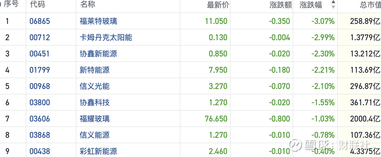 截至发稿,今日港股多只光伏板块个股再度下挫,福莱特玻璃(06865.HK)跌超3%,新特能源(01799.HK)、信义光能(00968.HK)等多只个股也跟跌2%以上。