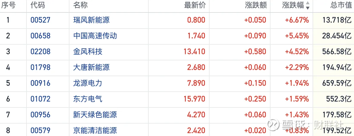 截至发稿,瑞风新能源(00527.HK)大近7%,金风科技(02208.HK)涨逾4%,龙源电力(00916.HK)等多只个股也明显跟涨。
