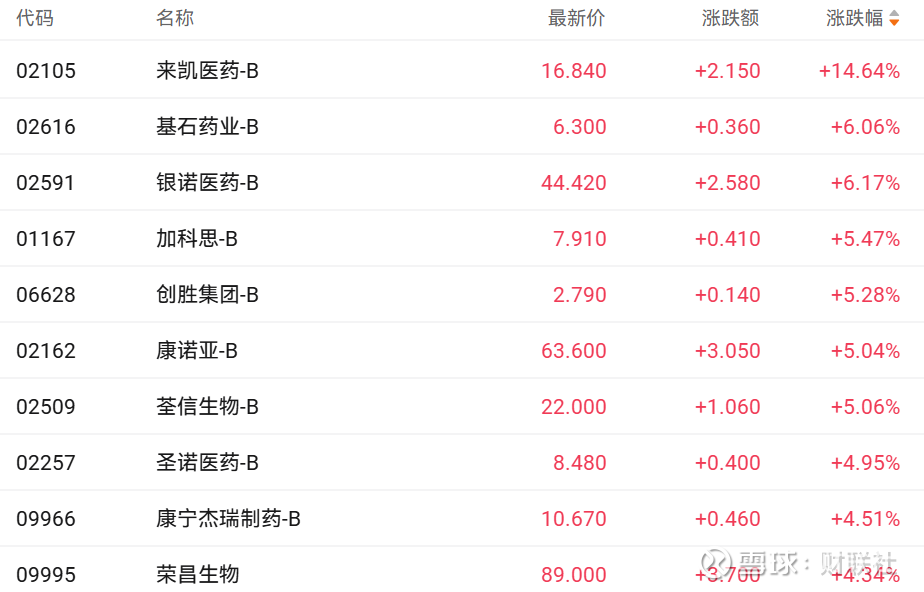 截至发稿,来凯医药-B(02105.HK)涨14.64%、基石药业-B(02616.HK)涨6.06%、加科思-B(01167.HK)涨5.47%。