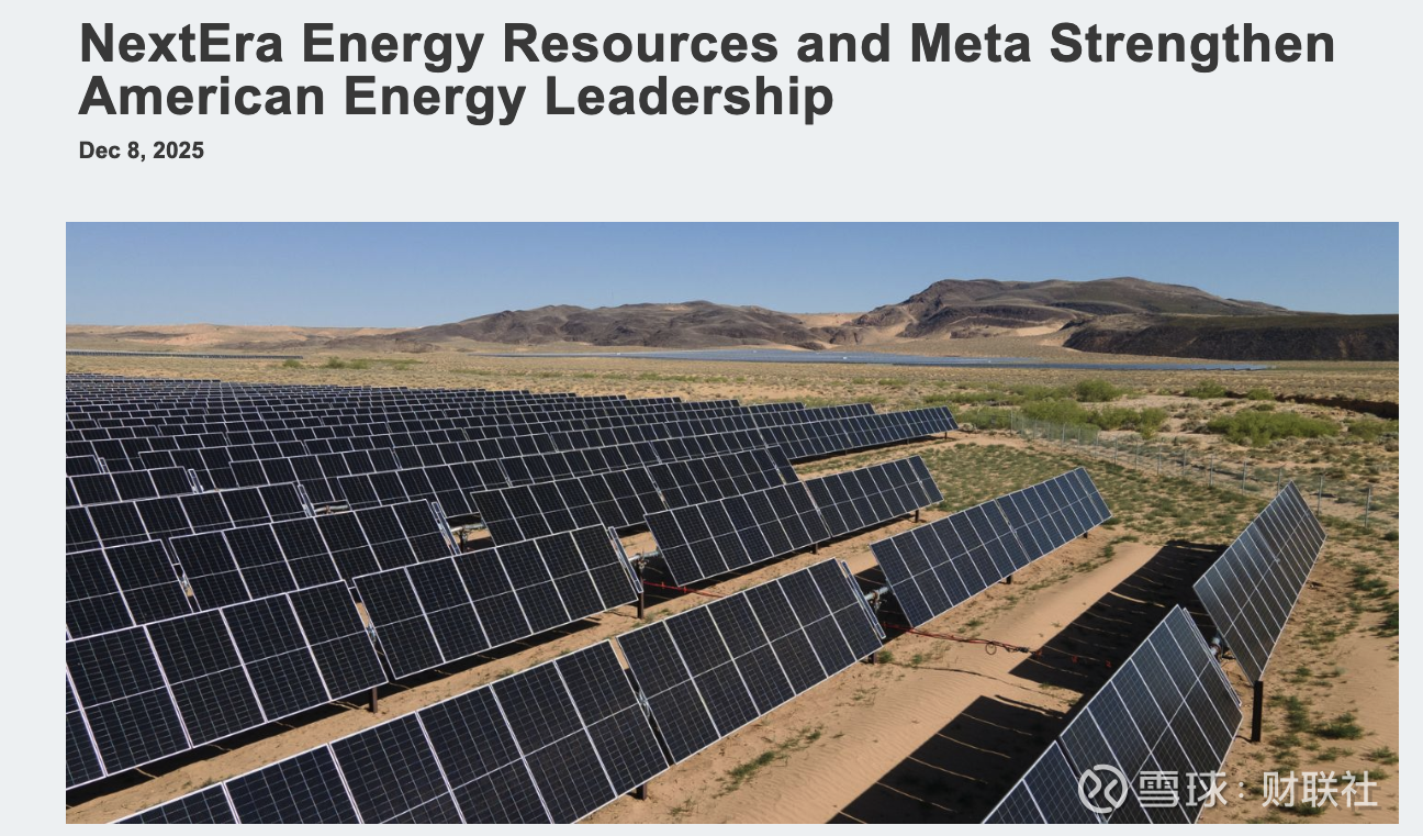 财联社12月8日讯(编辑 史正丞)全球市值最高电力股新纪元能源(NextEra Energy)周一连发两条公告,官宣与科技巨头谷歌、Meta在AI、电力领域的最新合作。