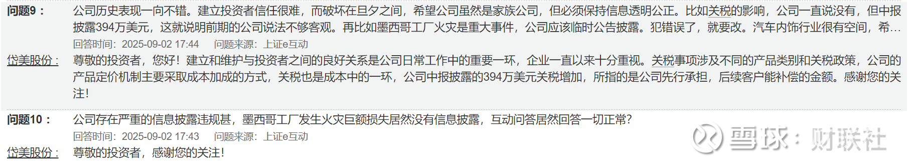 随后,在9月19日举行的2025年上海辖区上市公司集体接待日暨中报业绩说明会上,有投资者向肖传龙提问称:“保险理赔是否已全额到账?此次事故是否暴露海外产能布局的风险管理漏洞,未来将如何优化全球生产基地的应急机制?”