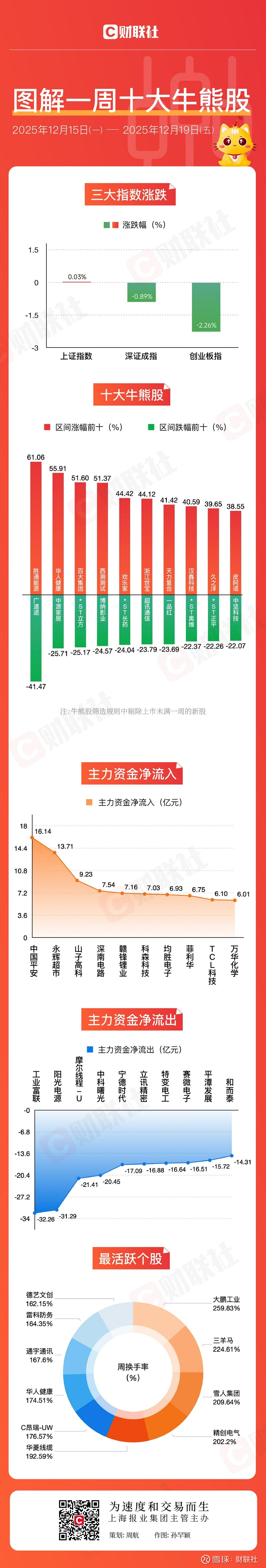 周主力资金净流入方面,中国平安、永辉超市主力资金净流入超10亿元。主力资金净流出方面,本周工业富联、阳光电源、摩尔线程-U、中科曙光主力资金净流出超20亿元。