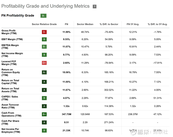 因此,从自由现金流反推角度看,FN 当前估值偏向合理但不留明显安全边际,更适合在基本面趋势持续验证的前提下进行配置。