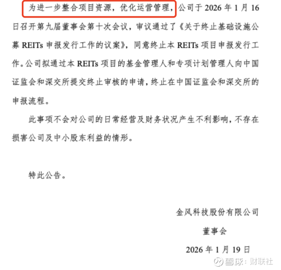 财联社1月21日讯(记者 吴雨其)公募REITs走到常态化发行的第六个年头,市场迎来“终止案例”。金风科技公告终止公募REITs申报发行,这也是公募REITs市场首次出现已进入交易所审核阶段、却在审核链条中止步的项目。几乎同一时间,电子城亦公告拟撤回基础设施公募REITs项目申报,后续择机继续推进。
