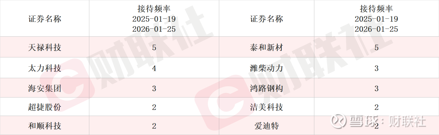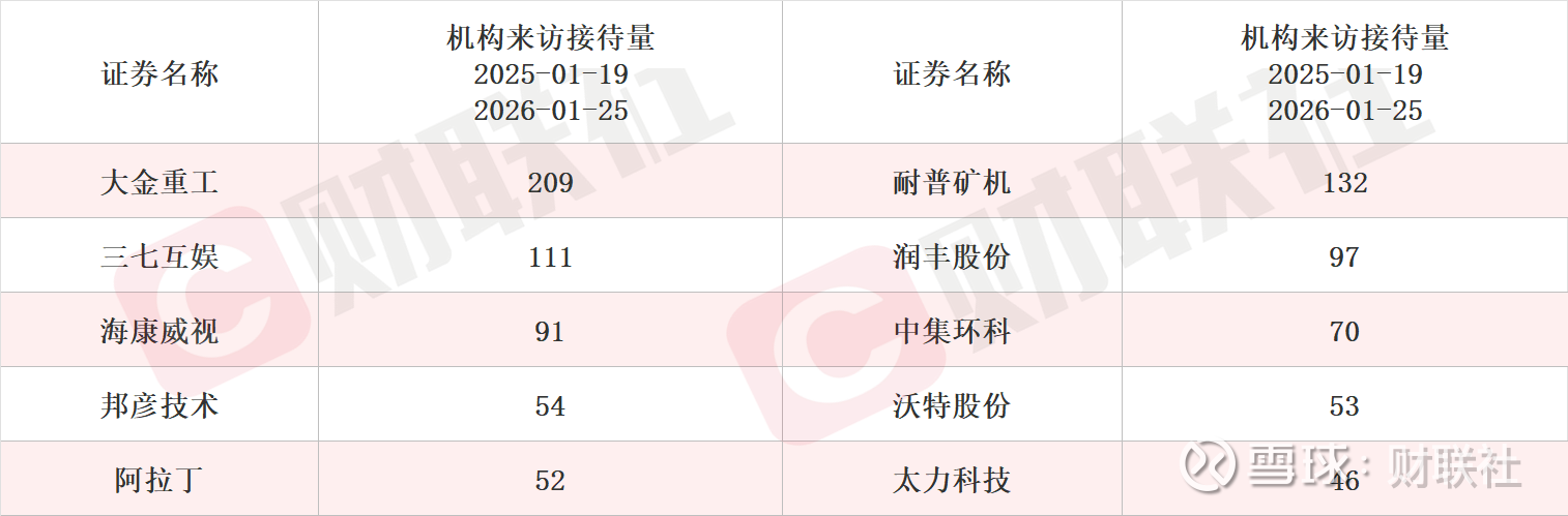 具体上市公司方面,据Choice数据统计,天禄科技和泰和新材接受调研次数最多,均达到5次。从机构来访接待量统计,大金重工、耐普矿机和三七互娱排名前三,机构来访接待量分别达209家、132家和111家。