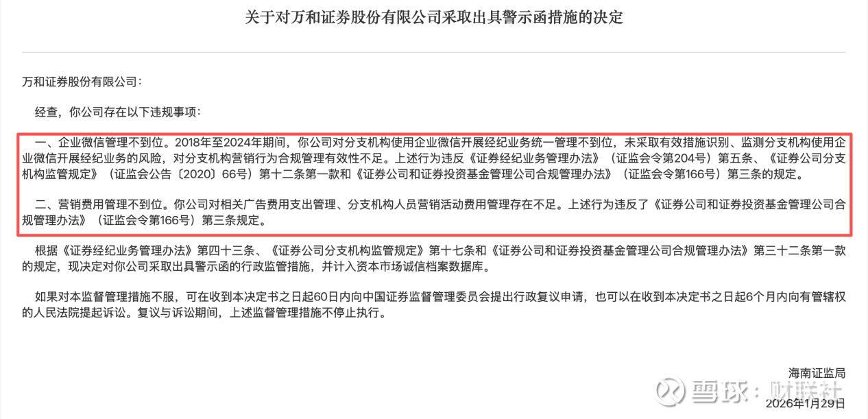 从罚单表述来看,万和证券企业微信管理不到位长达6年。