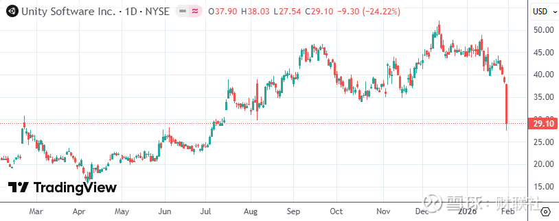 截至周五(1月30日)美股收盘,虚拟引擎开发公司Unity Software跌24.22%,创2022年以来最大单日跌幅;《侠盗猎车手》系列开发商Take-Two Interactive跌7.93%,元宇宙社区Roblox跌13.17%;移动技术公司AppLovin跌16.89%。