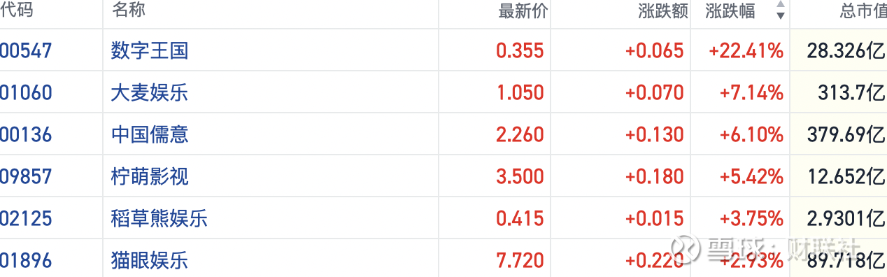 截至发稿,今日数字王国(00547.HK)涨超22%,中国儒意(00136.HK)涨逾6%,柠檬影视(09857.HK)等多只个股也明显跟涨,市场炒作情绪迅速升温。