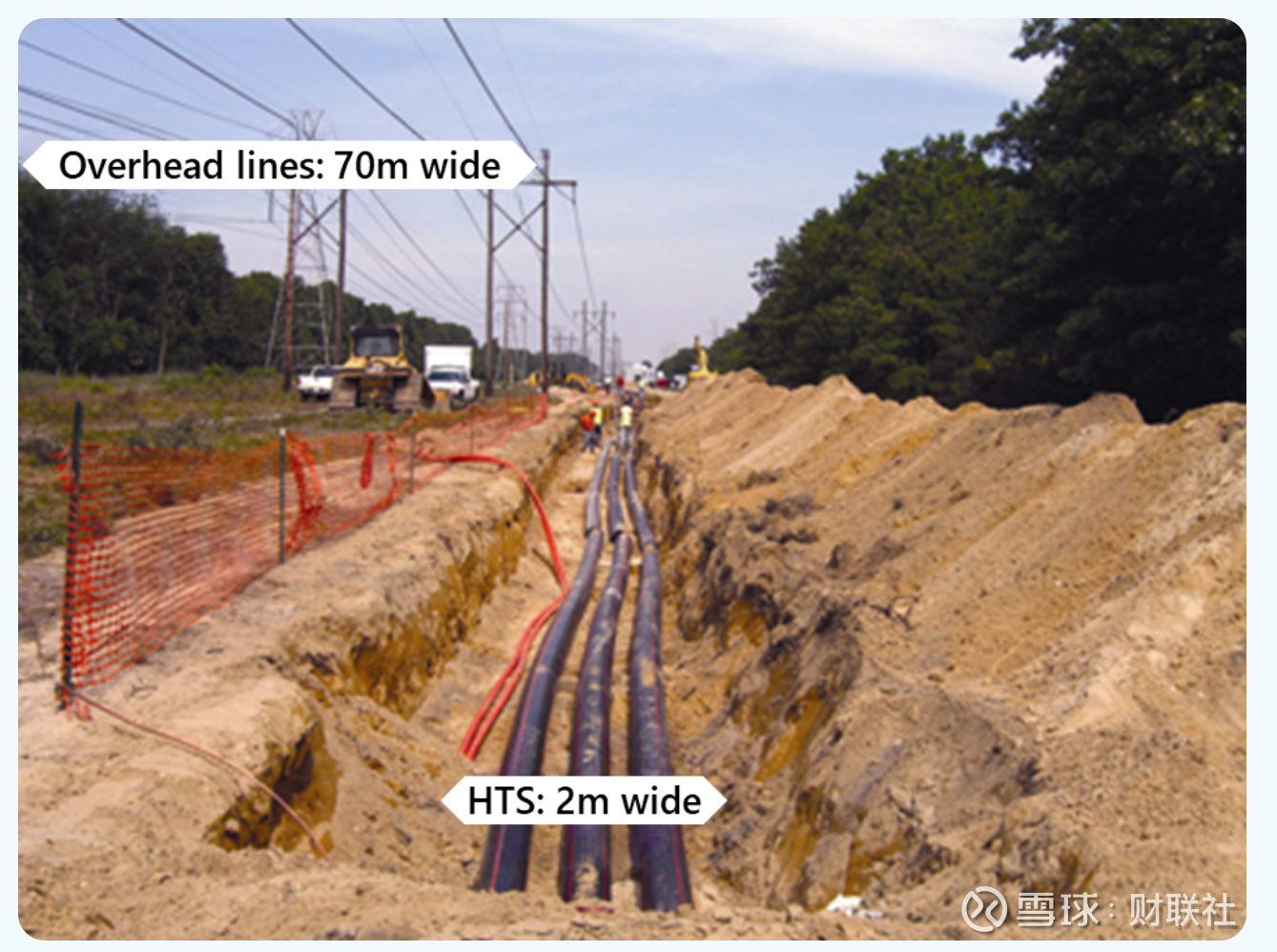 在数据中心外部,微软也有意愿与电力公司展开合作,利用高温超导技术建设长距离输电线路。传统架空输电线路需要占用约70米宽的区域,而超导电缆可能只需要约2米左右的空间。