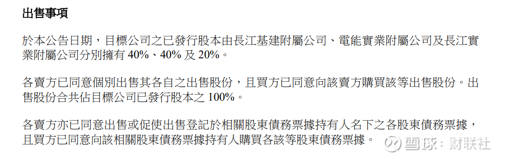 长江基建集团:出售其持有的40%权益,基本代价为42.19亿英镑,约合443.02亿港元。