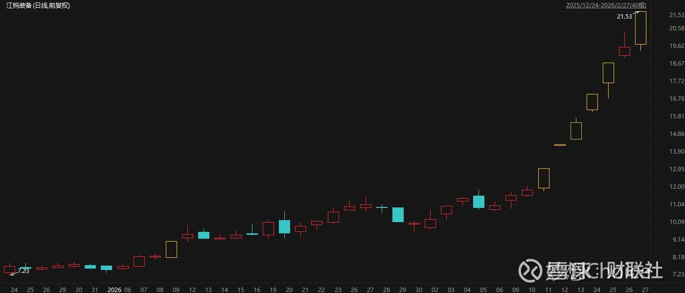 财联社2月28日讯(编辑 平方)A股市场并购重组持续活跃。截至周五收盘,拟定增募资不超18.82亿元用于收购钨钽资产的江钨装备斩获7天5板。