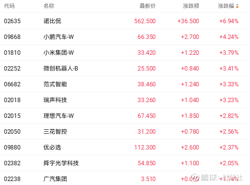 截至收盘,微创机器人-B(02252.HK)涨3.41%、三花智控(02050.Hk)涨2.56%、优必选(09880.HK)涨2.37%。
