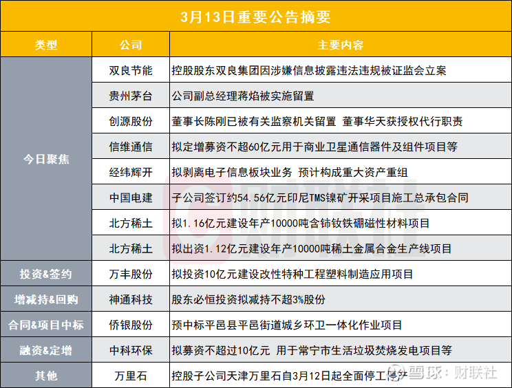 贵州茅台(600519.SH)公告称,公司于2026年3月13日收到遵义市监察委员会关于对公司副总经理蒋焰实施留置的通知。公司生产经营正常有序,公告事项不会对公司生产经营管理产生重大影响。目前,由公司董事长陈华代行董事会秘书职责。