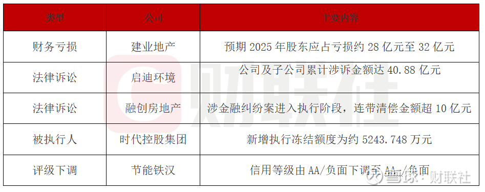 此前,该公司1月29日公告,2025年度预计归母净利润为-35亿元至-28亿元,同比变动-14.47%至8.42%。公司扣除非经常性损益后的归母净利润为-27亿元至-22亿元,同比变动-15.29%至6.06%。业绩变动主要原因为部分控股子公司股权被司法拍卖、应收款项增长导致信用减值损失增加、资产减值损失计提较大以及债务压力较重等。