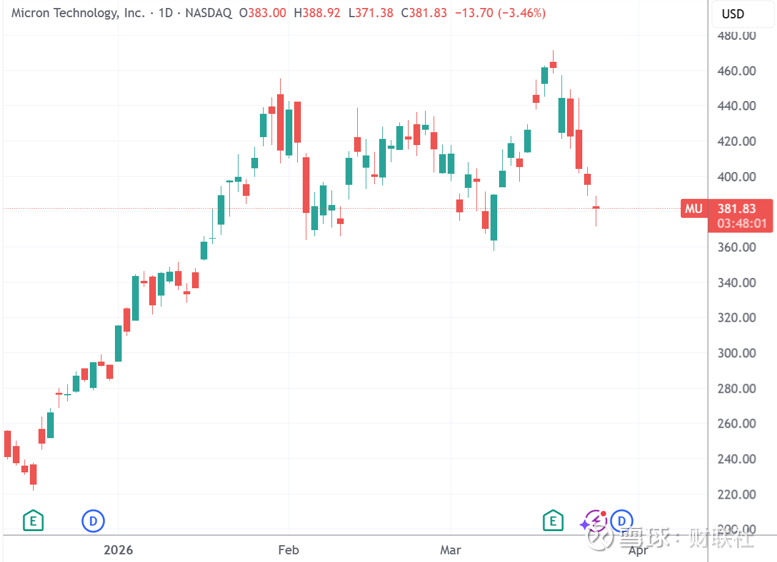 财联社3月25日讯(编辑 史正丞)周三美股开盘后,在大盘情绪尚可的背景下,存储板块却反向走弱。截至发稿,美光科技跌3.57%、闪迪跌4.12%,西部数据和希捷科技也一同下跌。