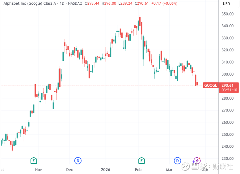 值得一提的是,作为搅动存储板块的事主,谷歌也没捞着什么好处。公司股价在周三一度跌破290美元,据2月初创下的349美元历史高点已经回撤近17%,距离20%的关键心理位置也只有咫尺之遥。