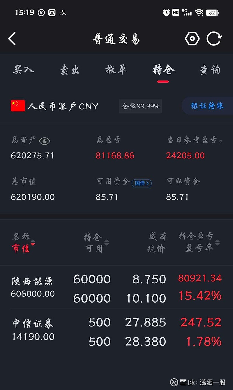 $陕西能源(SZ001286)$如果整天盯盘的话,大起大落的股价会让人的神经高度紧张,所以我尽量在交易时间段不看盘,收盘后再看一眼就得了。昨天陕能没有继续下跌,我就放弃了加仓计划,但是又有手痒交易的冲动,于是就买了几手中信证券,也算是丢了西瓜捡了芝麻。