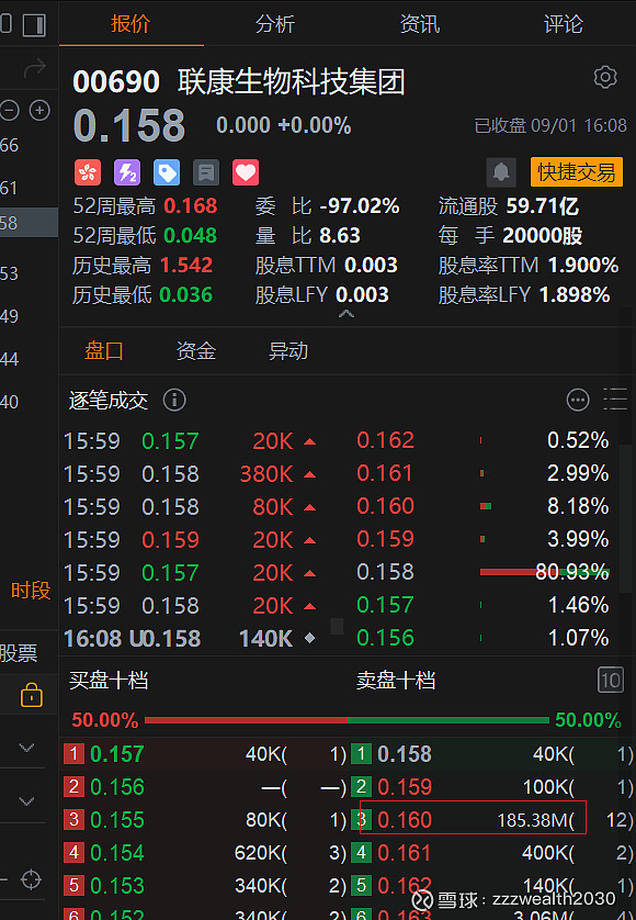 昨天成交了1.23亿股,2%股份,昨天收盘看到0.16竟然有1.8亿股卖单,不知道哪来的这么大卖盘