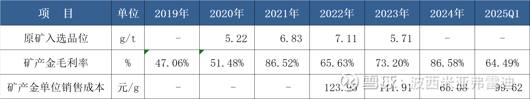 注2)上表的2024年矿产金单位销售成本数据明显偏低,可能因当年销量大于产量造成,实际数据应该大于上表数据。