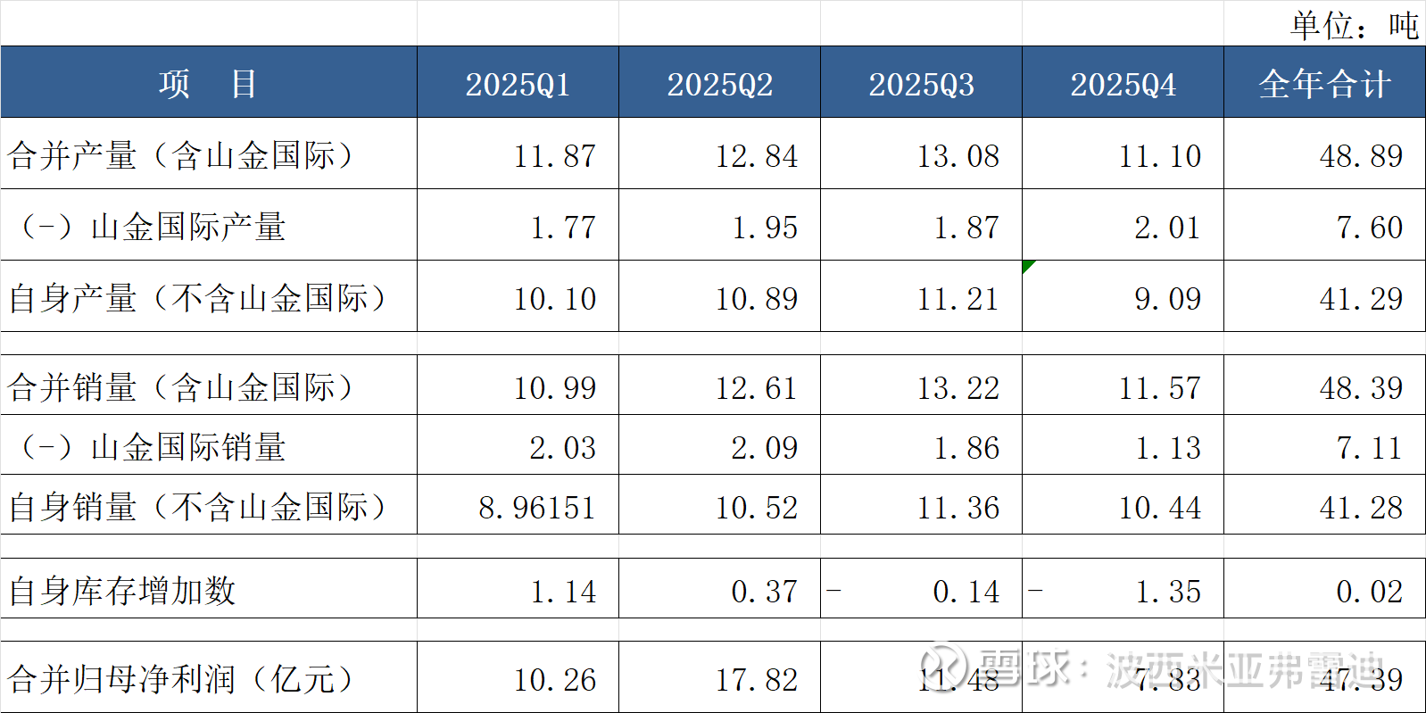 (1)2025年3季度因一次性摊销评估增值,导致矿产金单位销售成本阶段性冲高,相关影响又在4季度予以冲回,造成季度间数据明显扭曲(即3季度成本被抬高、4季度成本被压低)。因此不宜单独拆分看待3~4季度单位销售成本,应当主要看2025年下半年的单位销售成本。