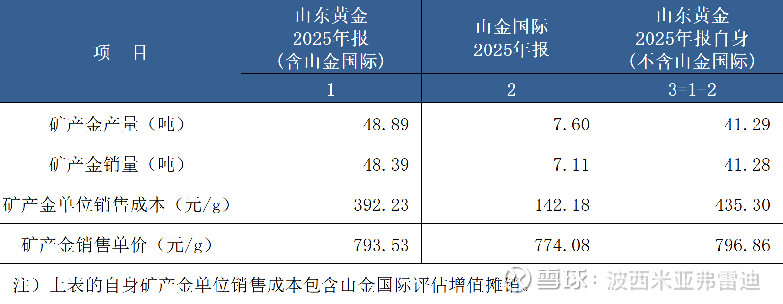 2025年,山金国际评估增值摊销的税后金额为3.6809亿元,折算为税前金额 4.9079亿元;以山东黄金2025年自身销量41.276吨计算,评估增值摊销对应增加的自身单位销售成本约为11.89元/g。