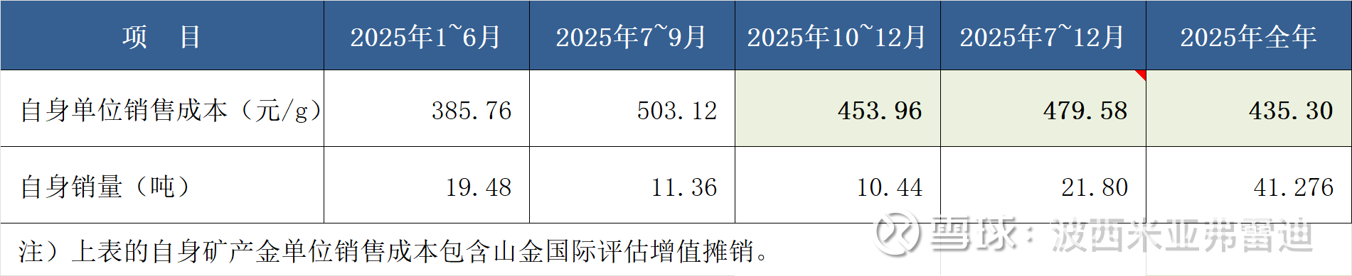(2)2025年下半年的自身单位销售成本为479.58元/g(不含山金国际),扣除评估增值摊销影响数11.89元/g后,实际下半年的自身单位销售成本为467.69元/g(不含山金国际)。